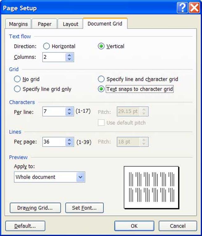 Ở mục Text flow, chọn direction : Vertical. Xin xem Hình B10. Sau khi chọn xong, khi ta gõ chữ vào MS Word thì chữ sẽ hiện vào cột bên phải từ trên xuống dưới và từ phải qua trái. Mỗi lần nhấn phím Enter thì ta sẽ thấy con trỏ chạy qua cột mới nằm bên trái.